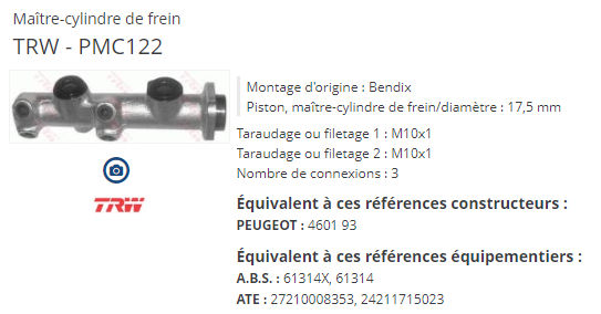 Quand on parle d'un maitre cylindre de 20mm par exemple, je peux mesurer la tige qui sort directement ? Si oui, je viens de le faire sur mon ancien, c'est écrit "20" sur le corps du maitre cylindre, mais en mesurant, je trouve le tige, je suis à 17mm de diamètre.