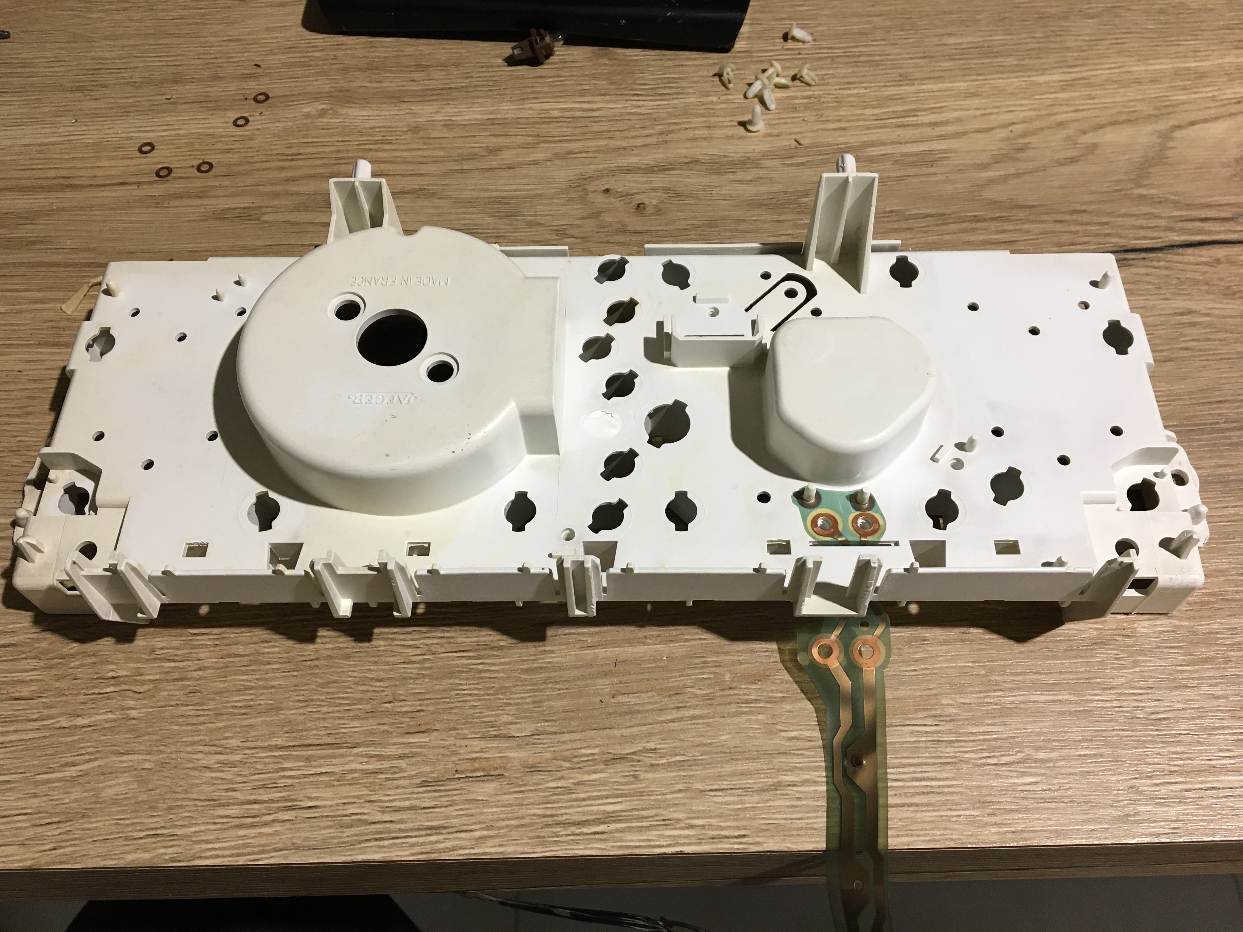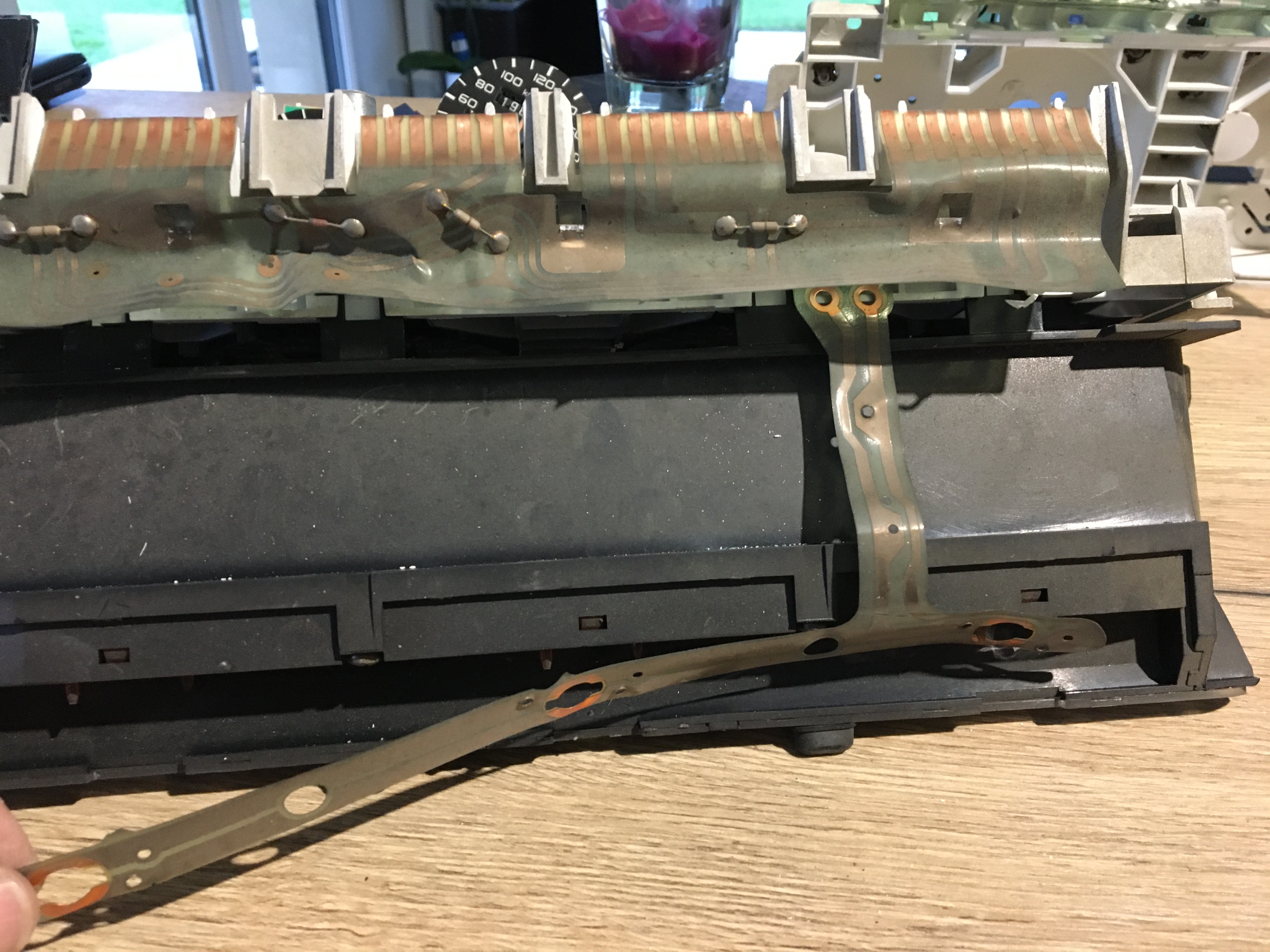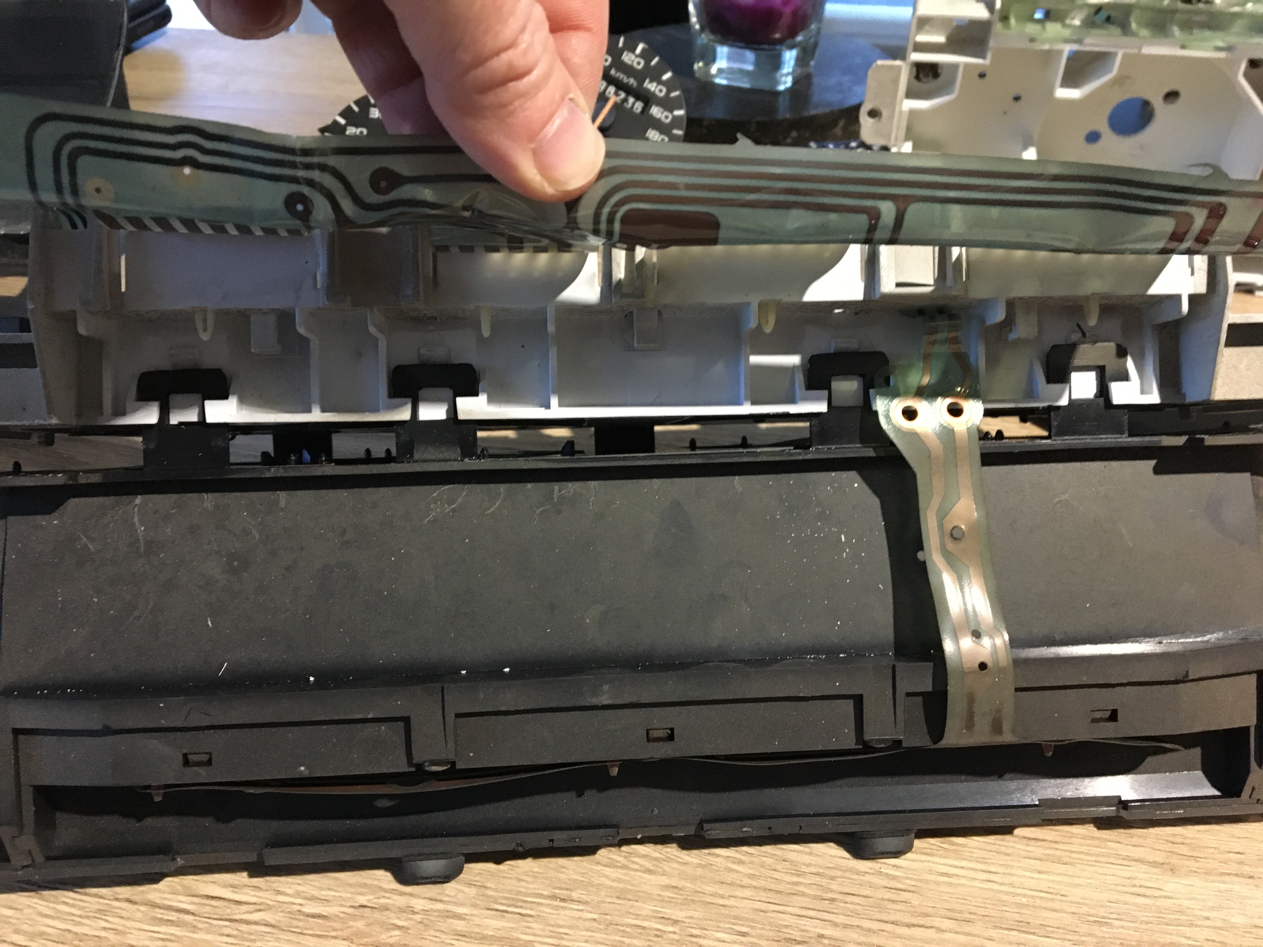 Sortir les point blanc qui maintiennent les pistes sur le bloc compteur