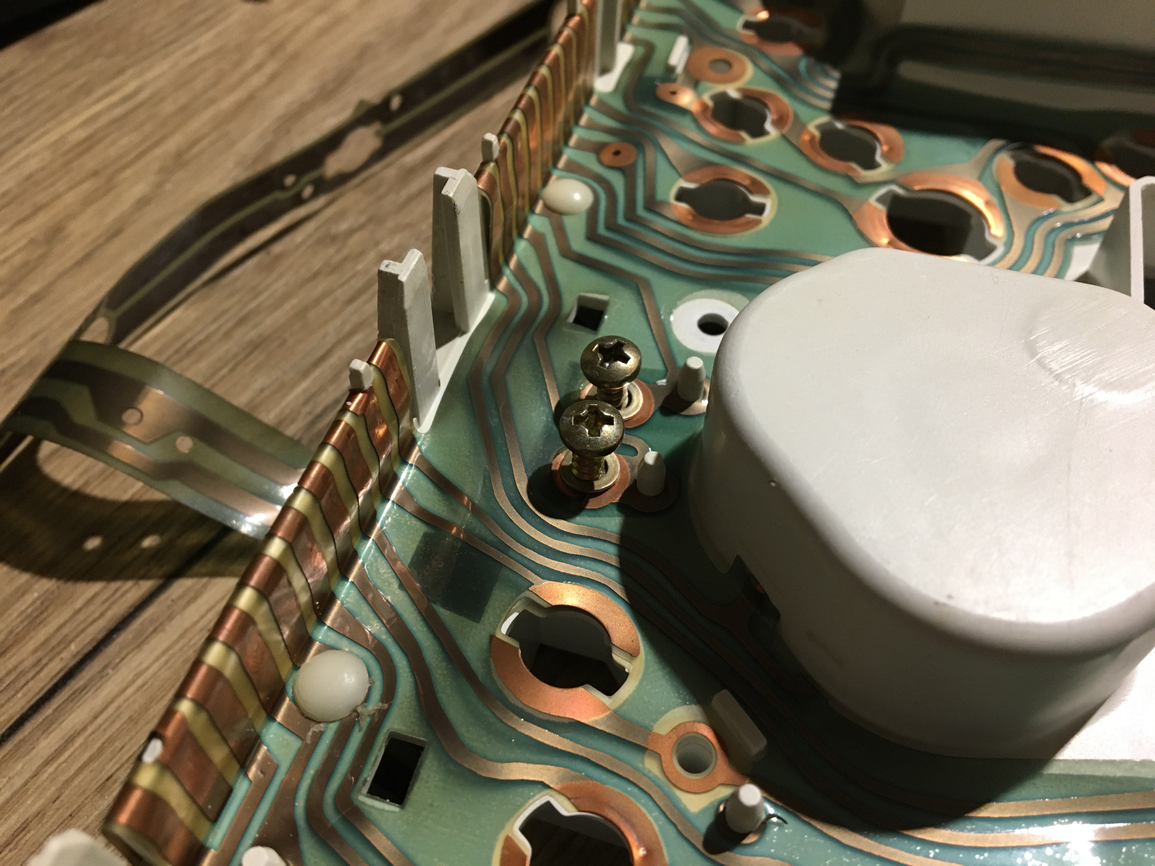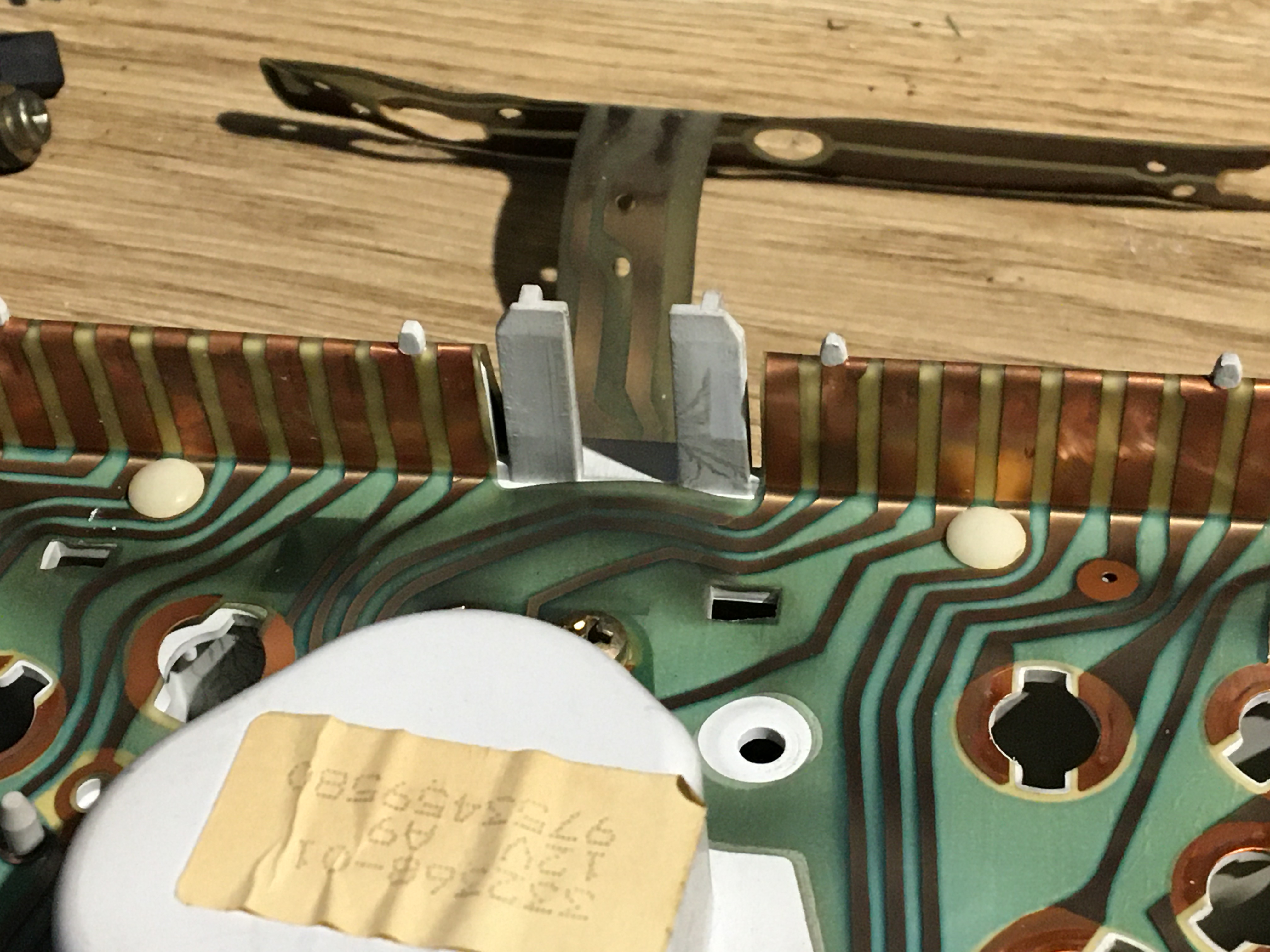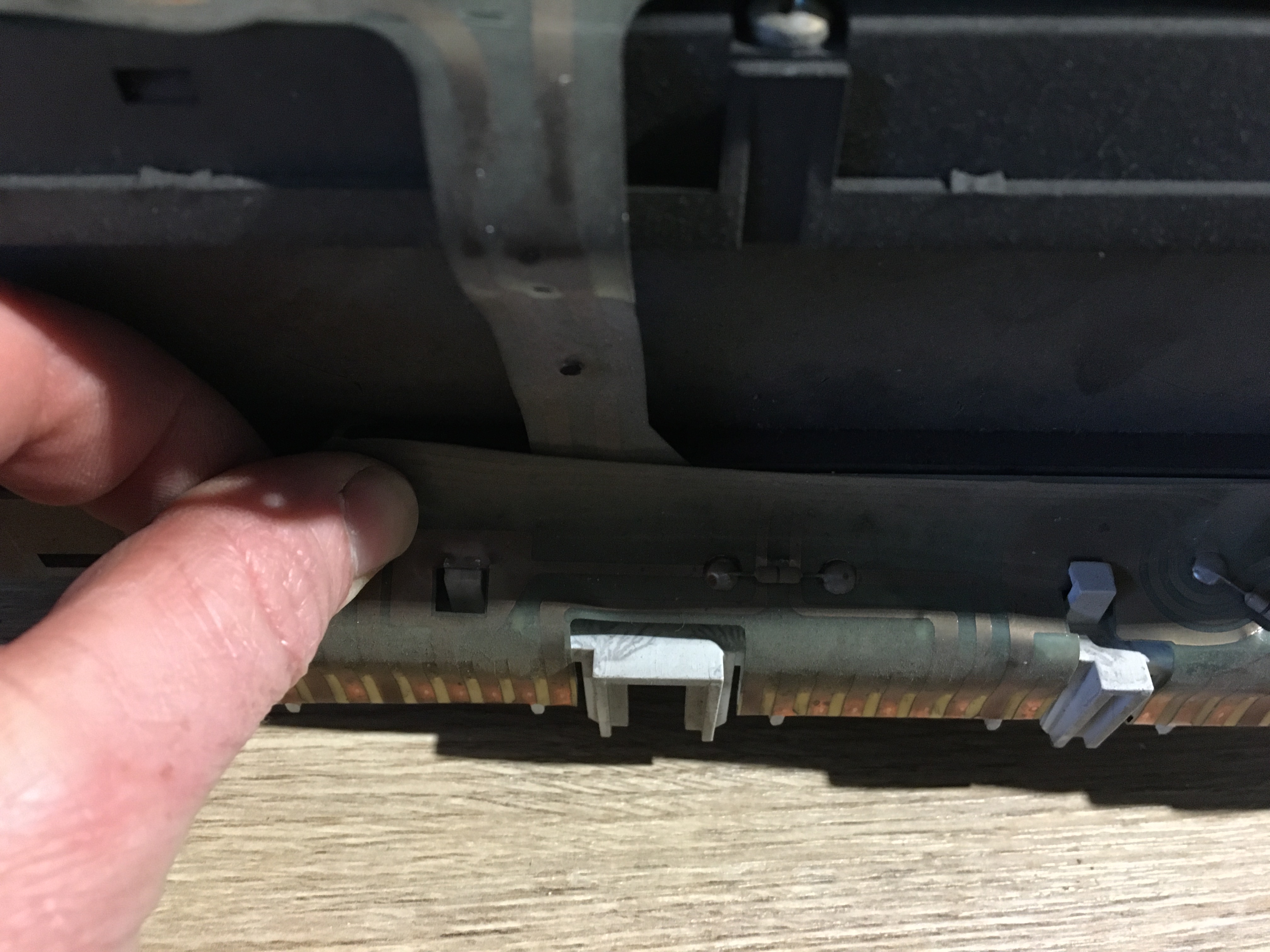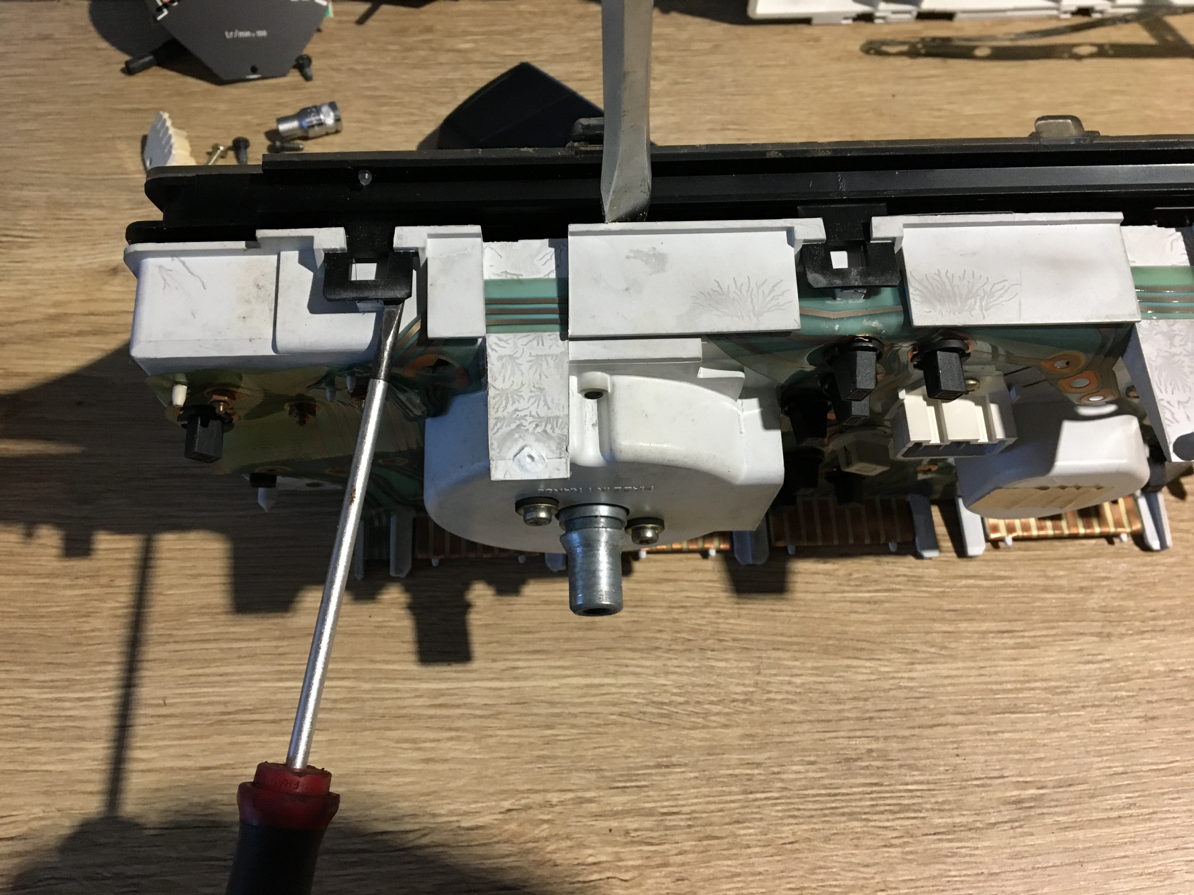 Sortir les point blanc qui maintiennent les pistes sur le bloc compteur