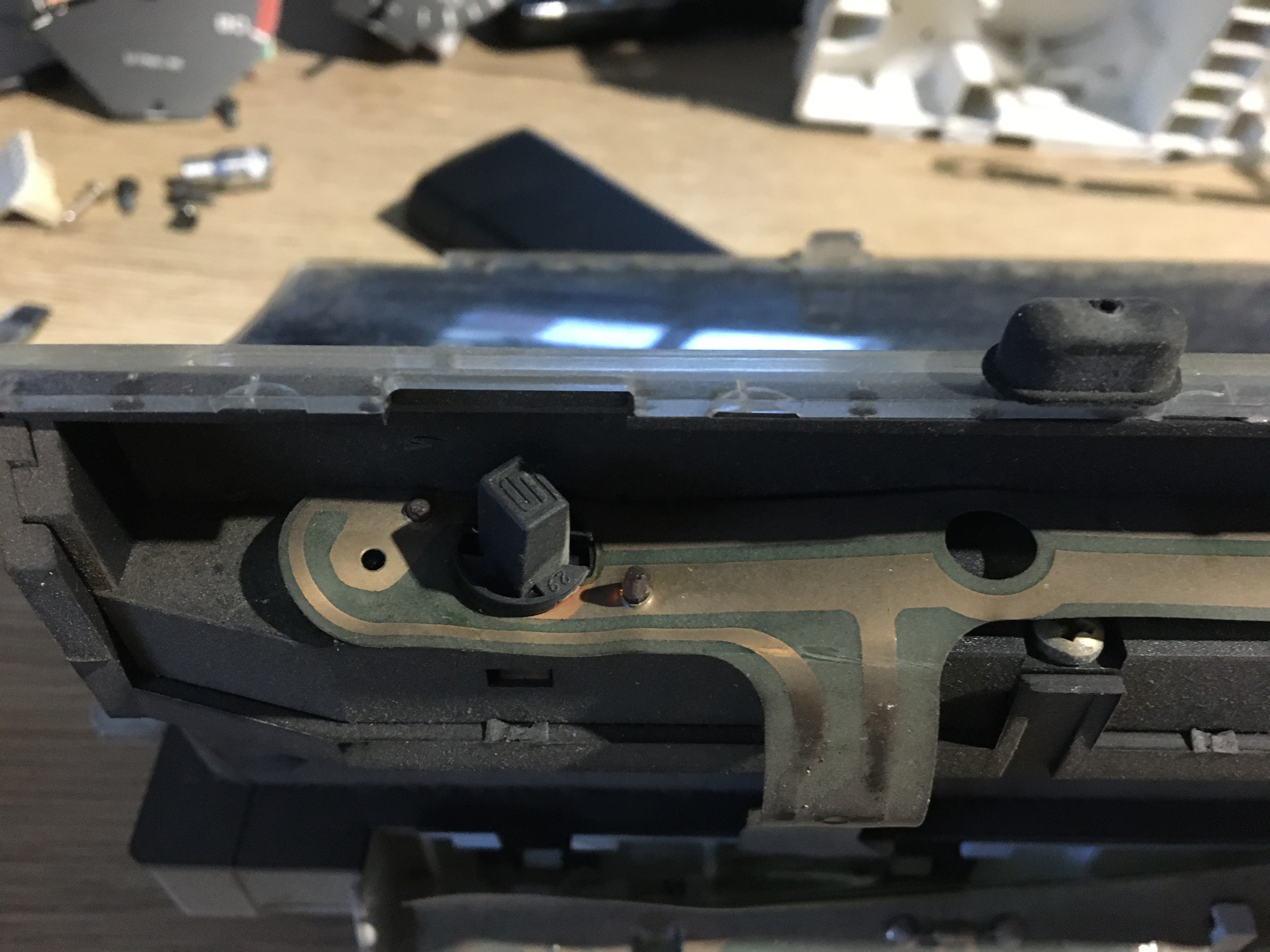 Celui de rallye est déjà en pièces. On soulève les languettes pour désassembler les deux parties.