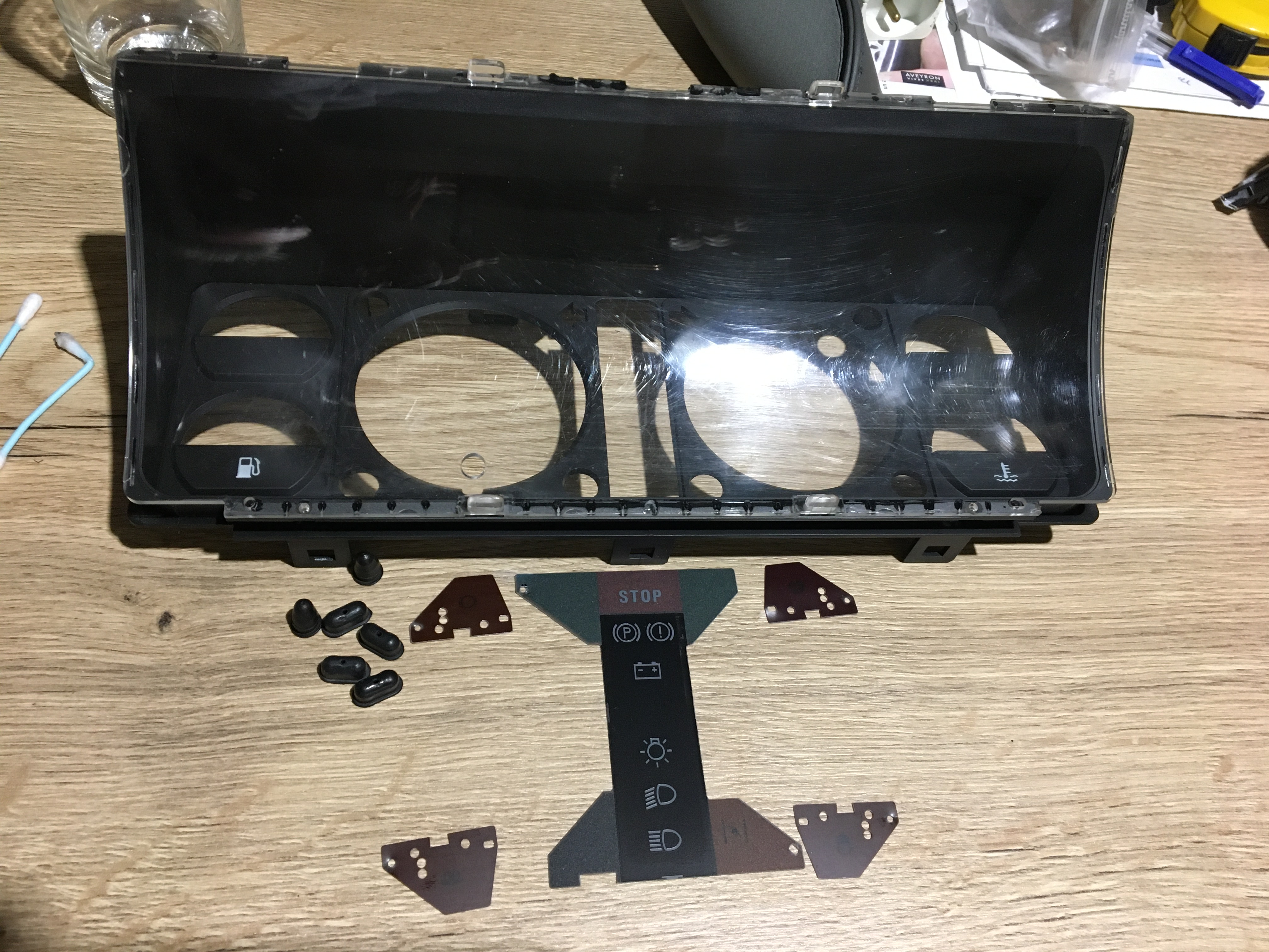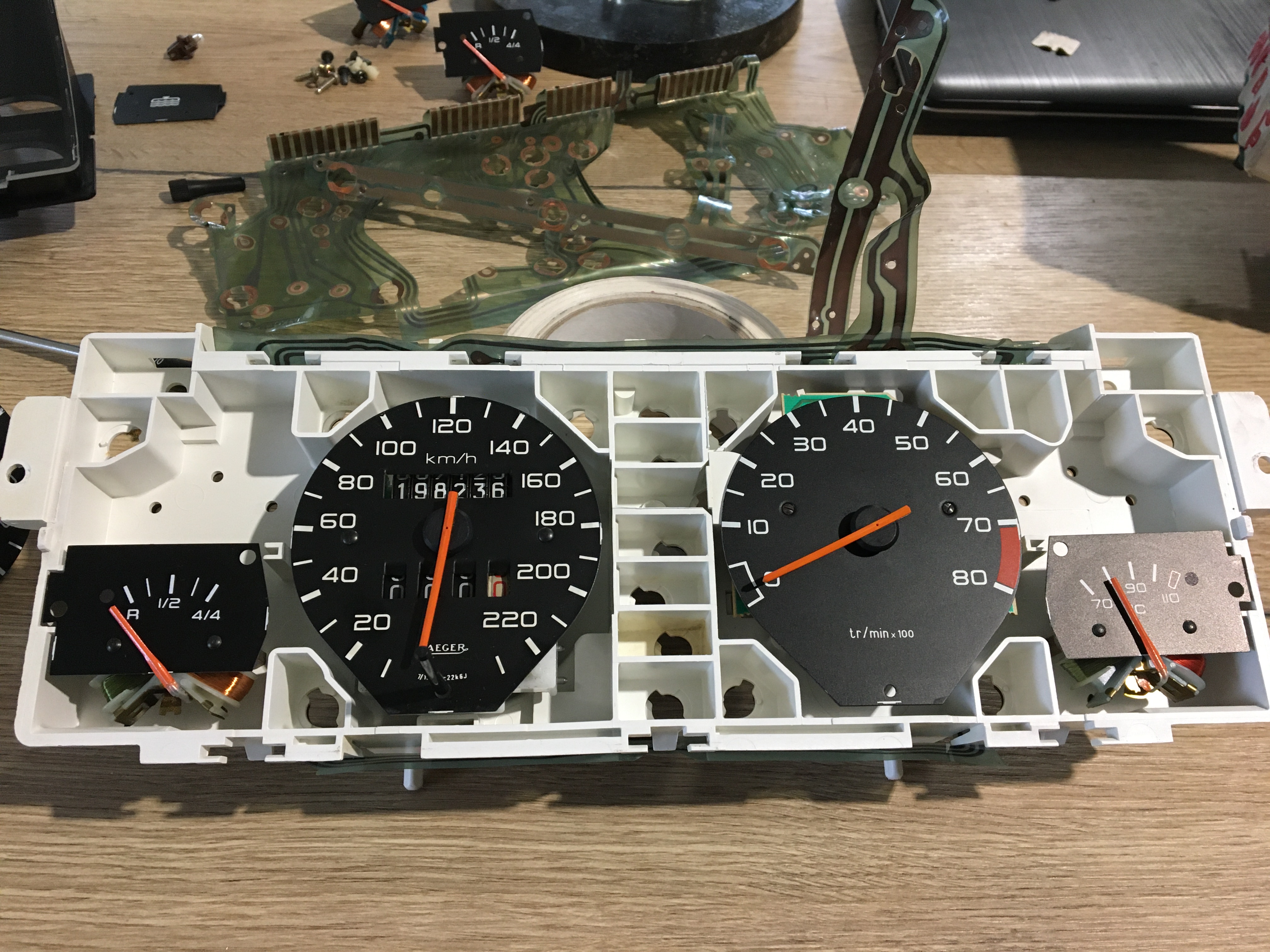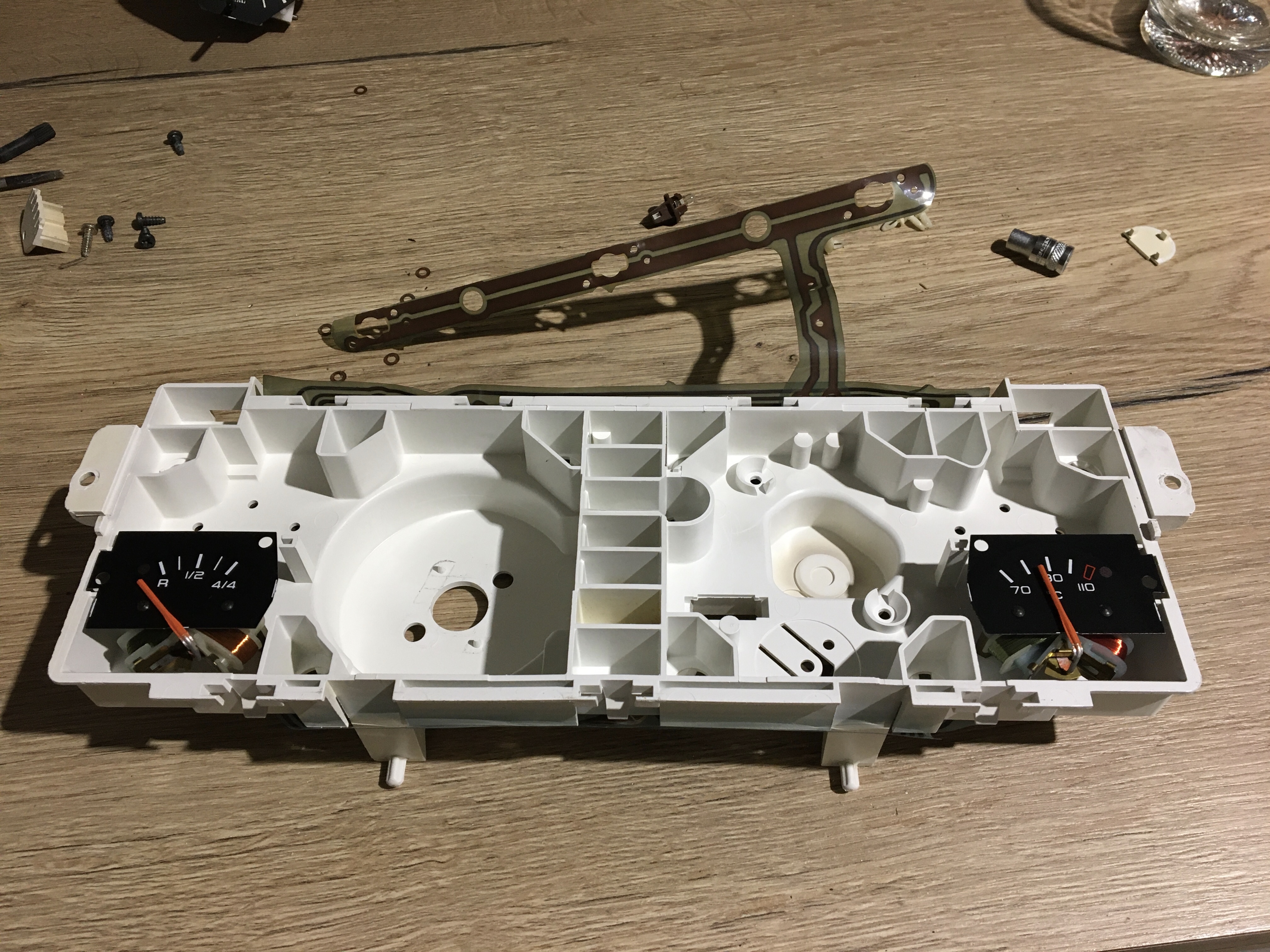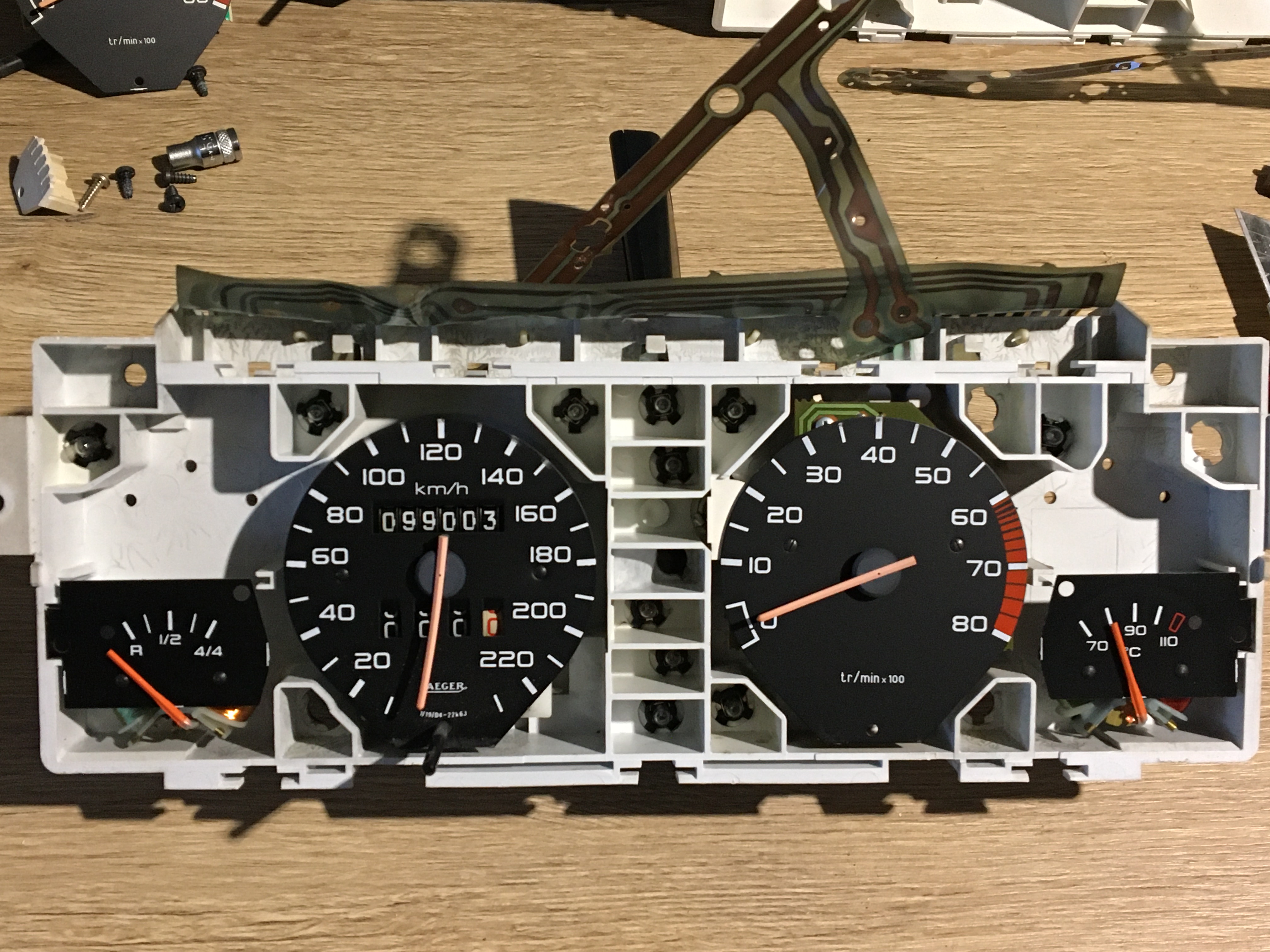 Ensuite c’est au tour de la jauge d’essence et du mano de température d’eau.