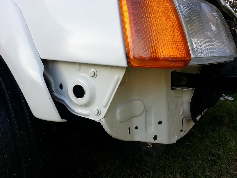 Le temps d'en replacer une pour ensuite passer au démontage des rails de guidage du parte choc en vu de les remplacer par des neufs.