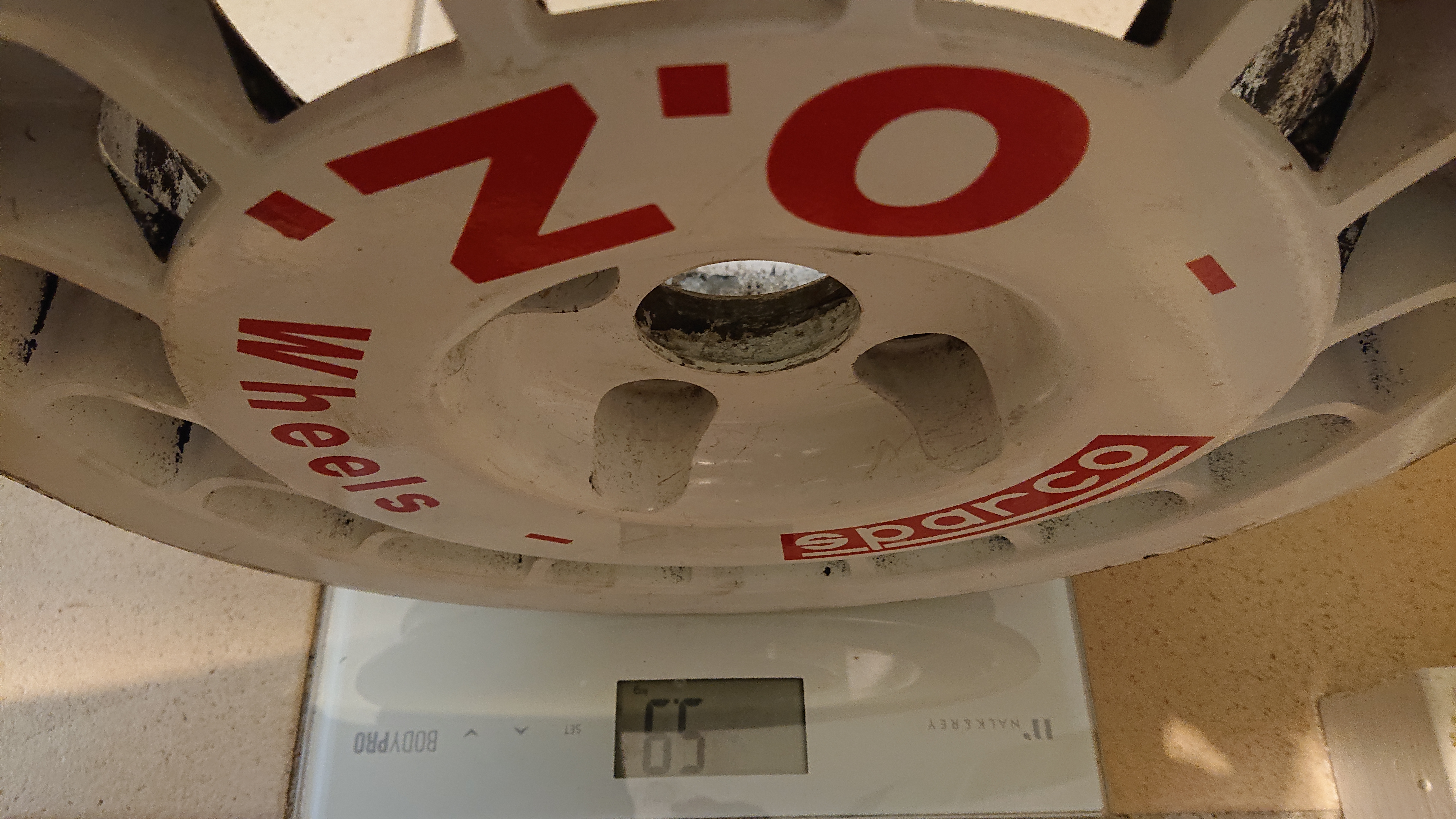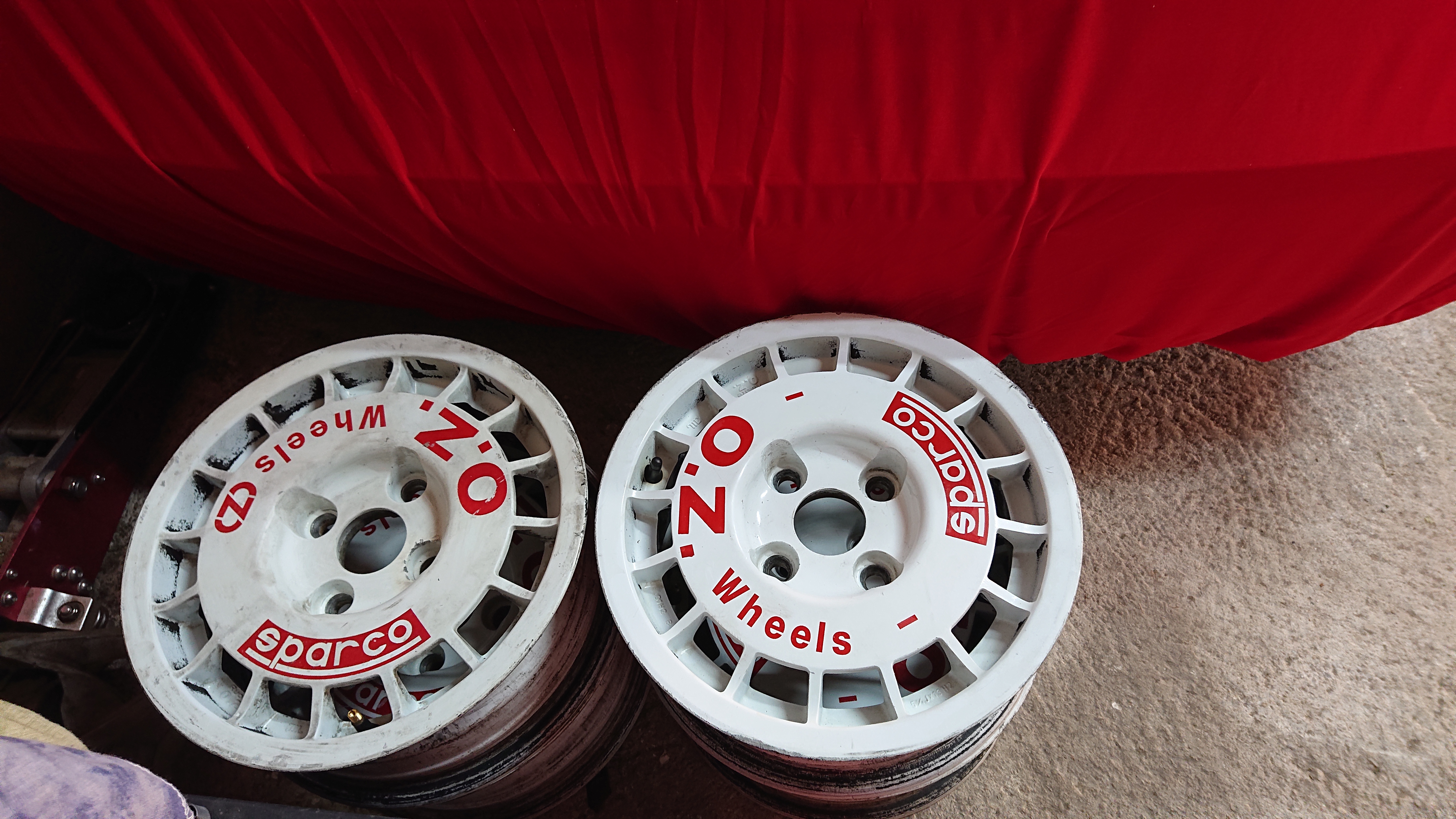 Aujourd'hui j'ai fait démonter les vieux pneus qui étaient sur les OZ en 13" :blush: