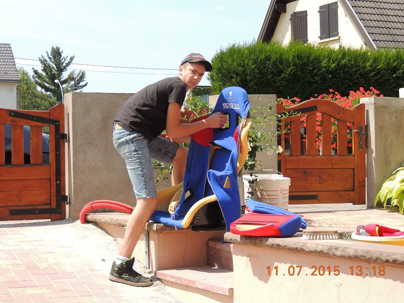 sinon, j'ai lavé les harnais qui en avaient bien besoin et j'ai déhoussé les sièges pour les passer à la machine.. pas les sièges.. les housses