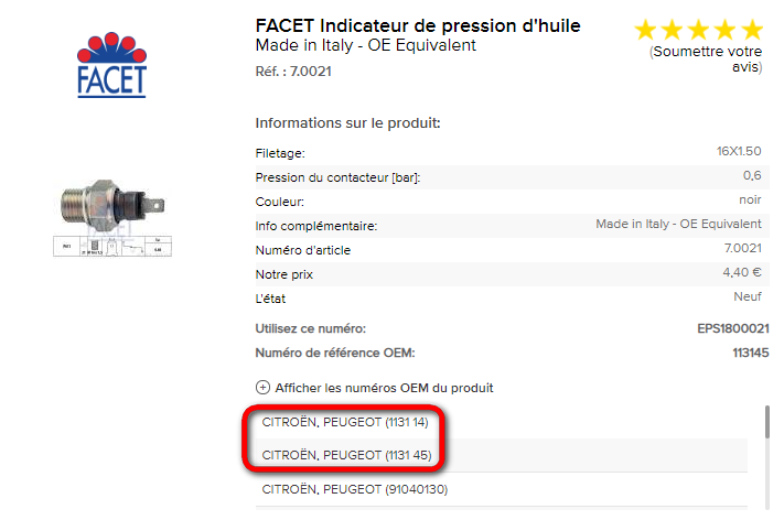 Du coup, le manocontact qu'on trouve sur Oscaro et compagnie est en remplacement du 2nd (référence 1131 14 indiqué dans la fiche détaillées du produit). Je me pose alors la question existentielle, quelle est la différence ?