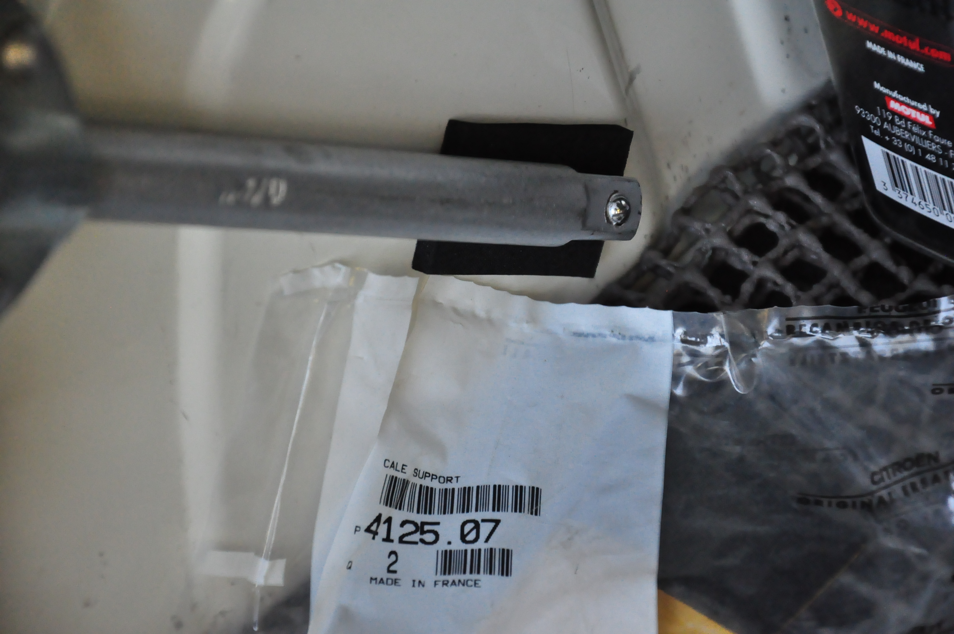 Au passage, petit ajout du morceau de mousse, c'est normalement celui qu'on trouve d'origine vers le cric, à l'avant.