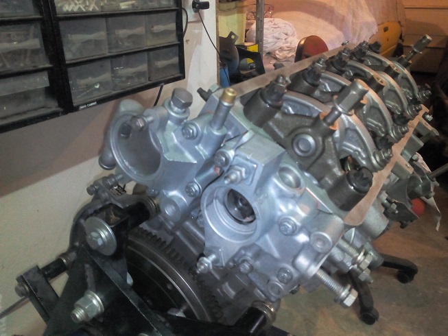 Aujourd'hui, j'ai mis en place la courroie de distri, fais le jeu aux soupapes, monté la rampe de Weber (fais les préréglages) et quelques bricoles comme pompe a essence, allumeur, etc......