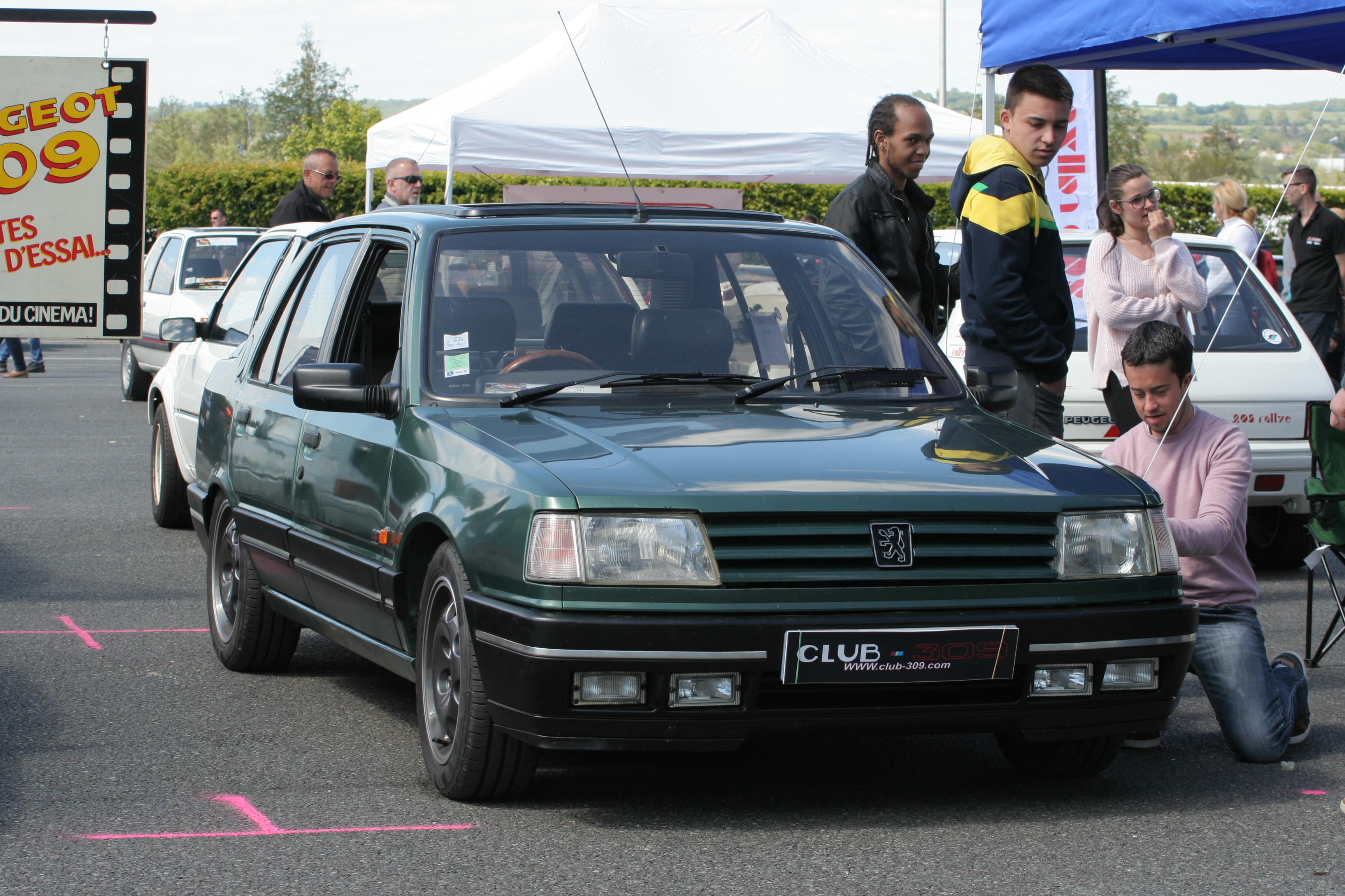 En face, une 2nd Turbo 16 au 205 GTI CDF, et derrière nous le club 309 venu en nombre avec des beaux modèles et des accessoires de concession d'époque !
