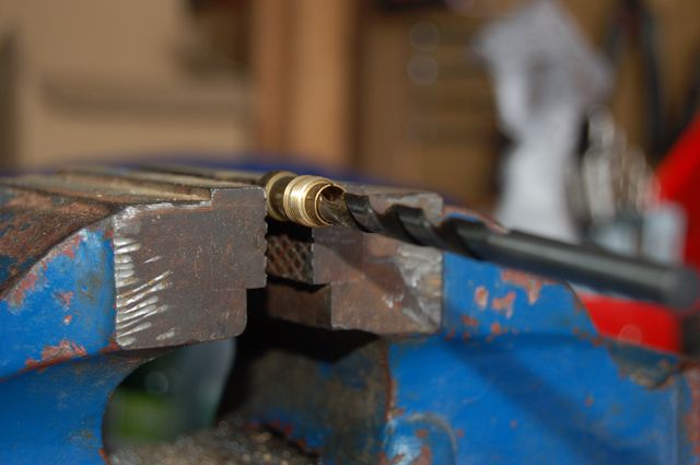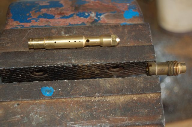 donc comme les gicleurs d'air d'origine ne se font plus et que pour augmenter le diamètre de passage d'air il faut ls réaléser, j'ai préférer usiner complètement les gicleurs d'origine pour pouvoir y passer ceux de DCOE. Donc il faut réaléser de 3mm de profondeur l'intérieur du gicleur coté pas de vis, et percer au dessus au diamètre 4,1mm le gicleur de part en part et grace à ça, je peux, avec les gicleur DCOE régler le débit d'air du mélange