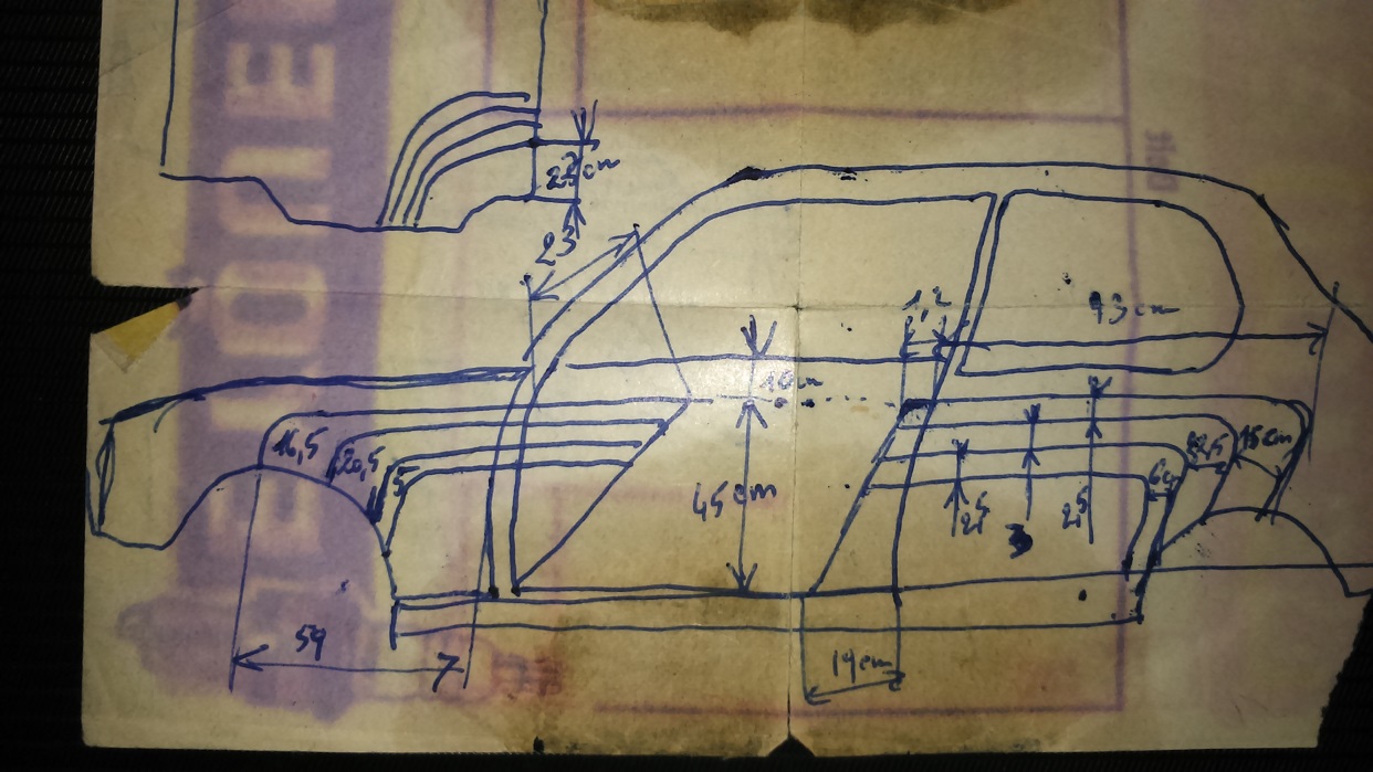 a la vue des decos trop sympas, le responsable carrosserie de l'epoque m'a prit les cotes sur un petit bout de papier ,que j'ai toujours gardé precieusement et je ne m'en suis jamais servi ..