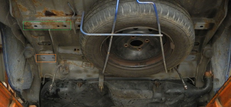(Dans l'absolu il suffirai de percer des nouveaux trous de fixation, puisqu'on dirait qu'ils ne répondent à aucun critère à part être dans la barre de renfort (c'est un longeron ?) ; après il n'y a pas beaucoup de marge pour les fixations principales, et je sais pas si les efforts tirent vers le bas ces fixations, dans ce cas-là il vaudrai mieux pas percer juste à côté d'un autre trou...