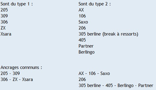Le train de 306 - ZX - Xsara fait + 6cm - il peut s'adapter en fabricant des câles pour les points d'ancrage