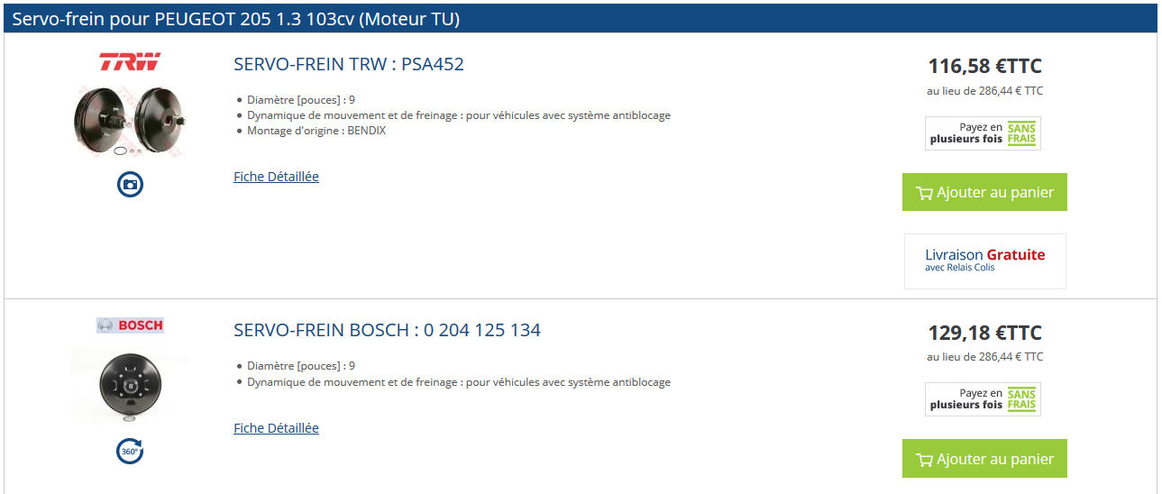 Mastervac TRW commandé chez Mister Auto : un 9 pouces pour 205 rallye REF PSA 452 livré avec joint + 2 écrous (reçu dans un carton TRW, c'est un bosch qui s'y trouvait