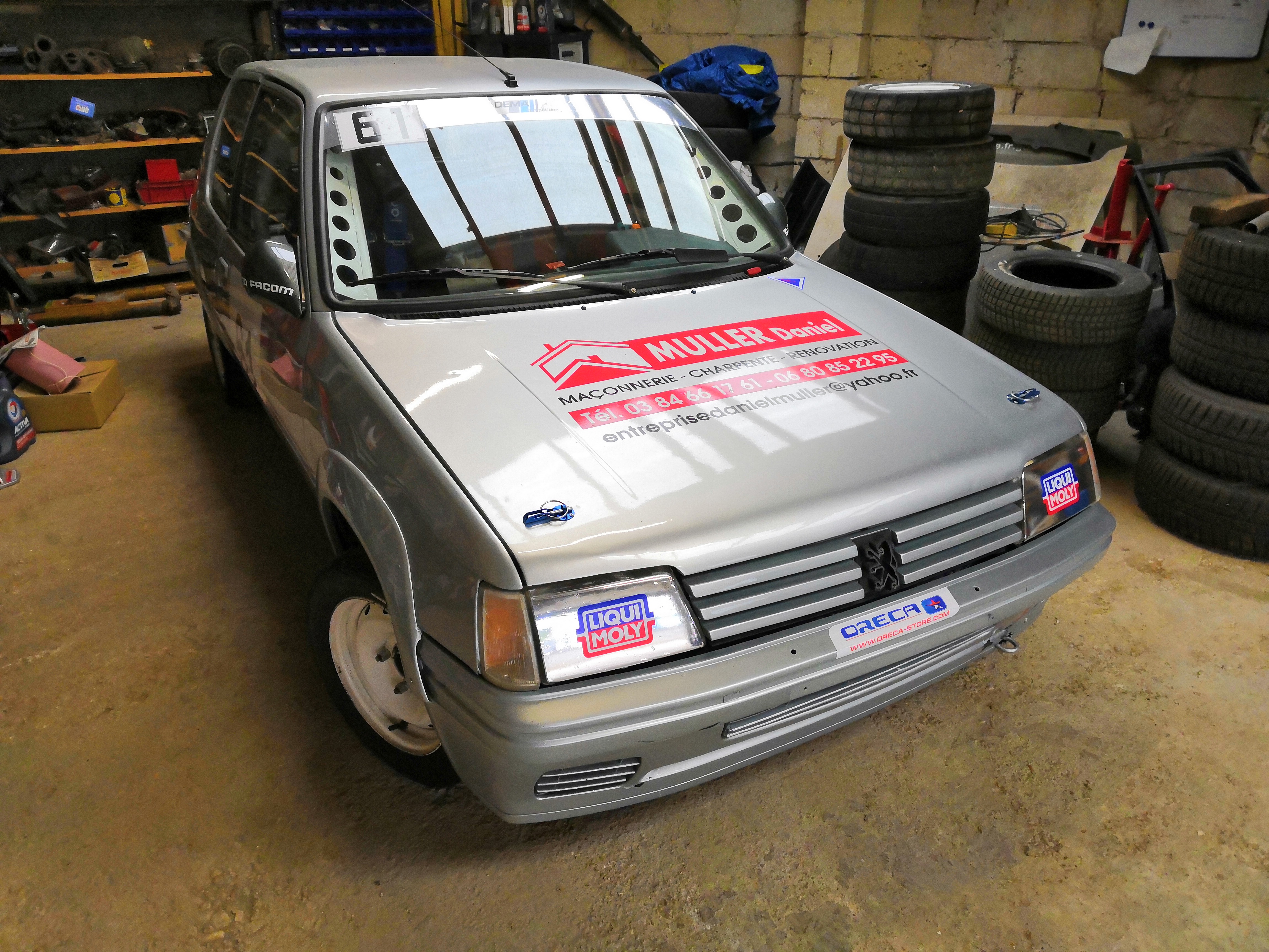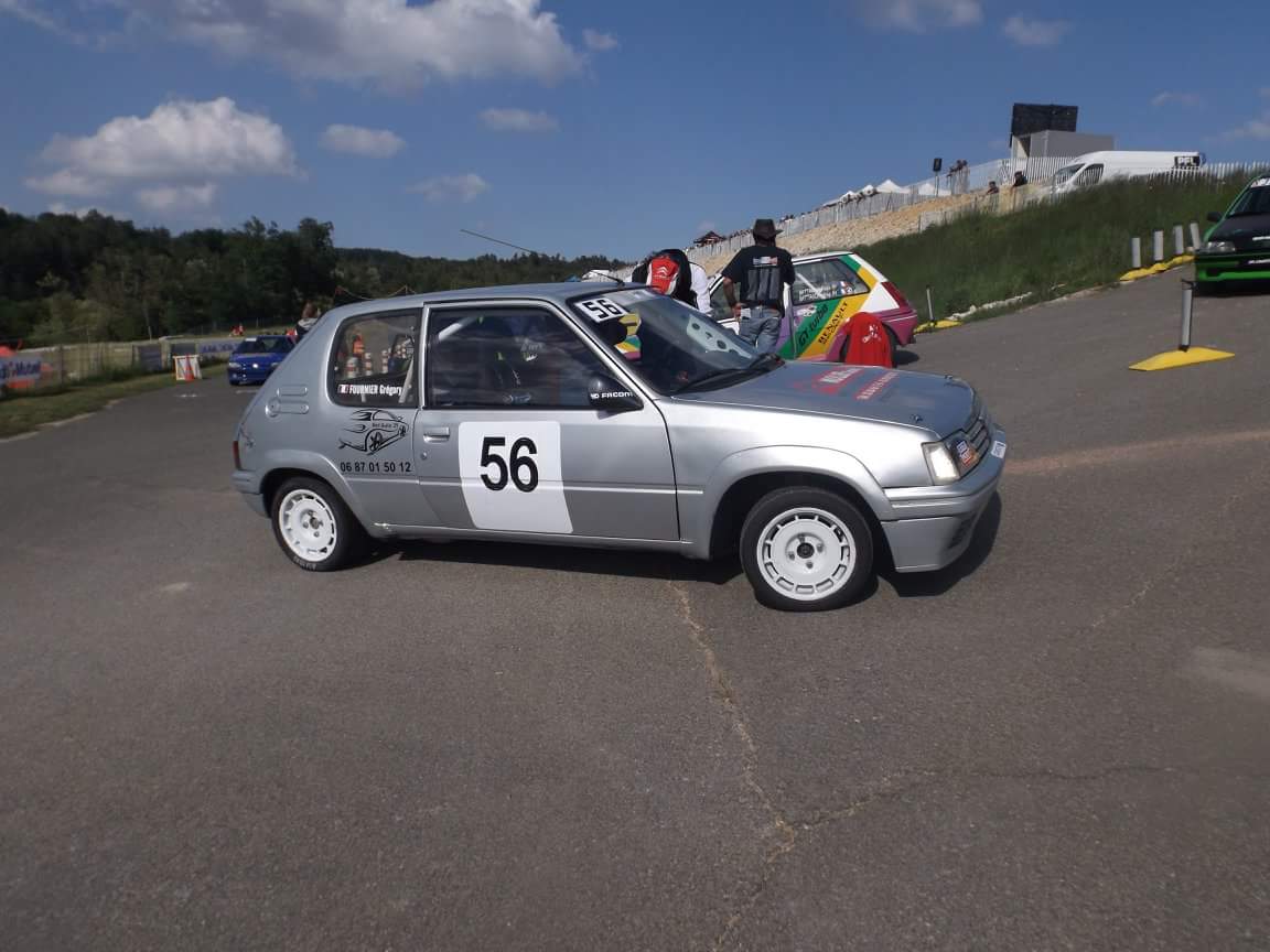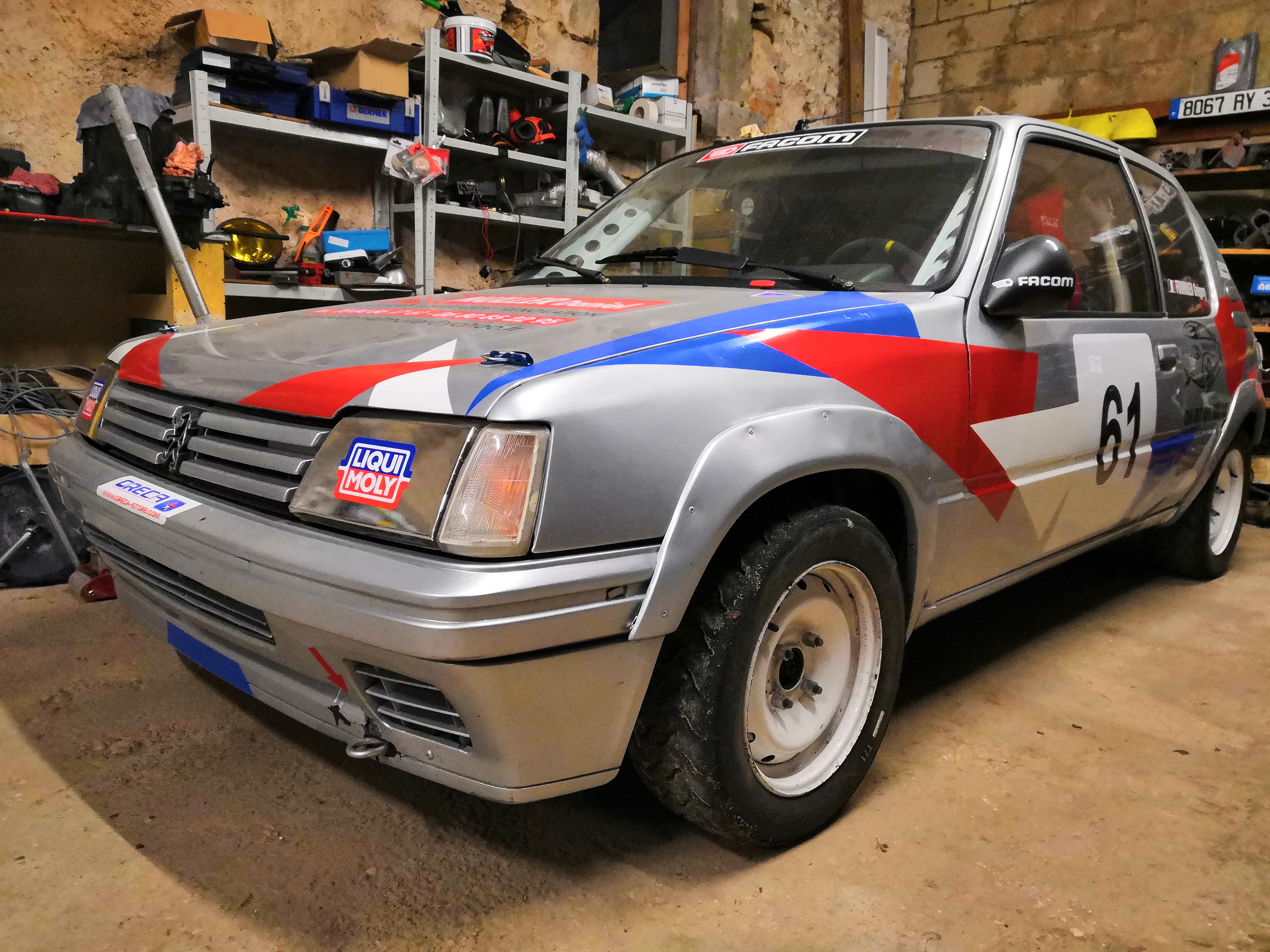 Depuis l'année dernière je court donc en slalom après lui avoir fait une bonne révision et une peinture. J'avoue qu'avec mon 13x64 et mes amortos rincés je galère un peu face au 106 et ax top n1 mais je prends énormément de plaisir à conduire à nouveau cette 205.