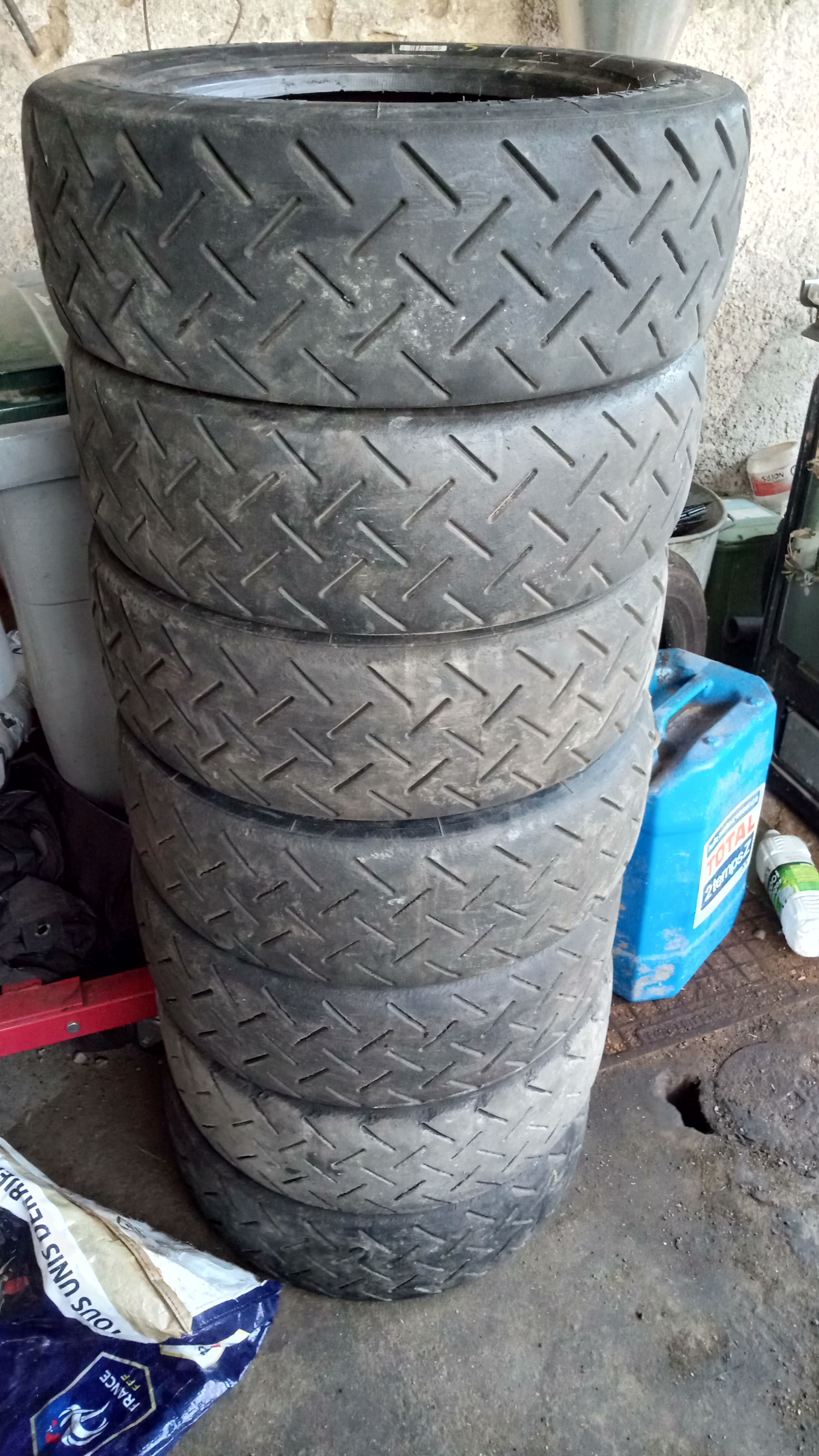 Bonjour je propose a l'échange 4 Michelin N20(medium) 25% d'usure en 15/53/13 et 3 bf Goodrich 15/53/13(medium) 30% usure aussi, ils on tous 4ans. Un de ceux ci contre un 185/60r13 semi slick ou pas mais homologué route avec peu d'usure(a voir au cas par cas)et bien sûr les neuf acceptés cdlt.