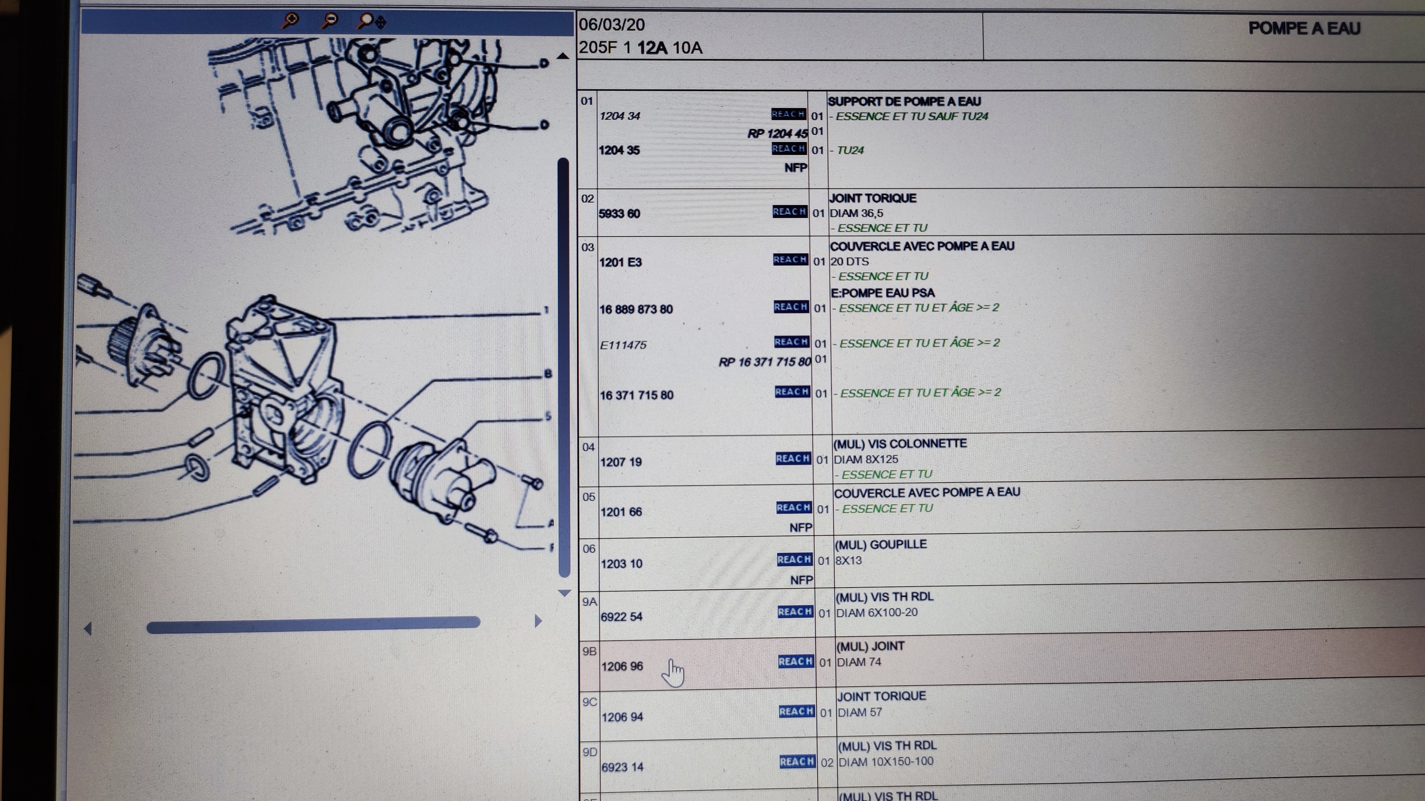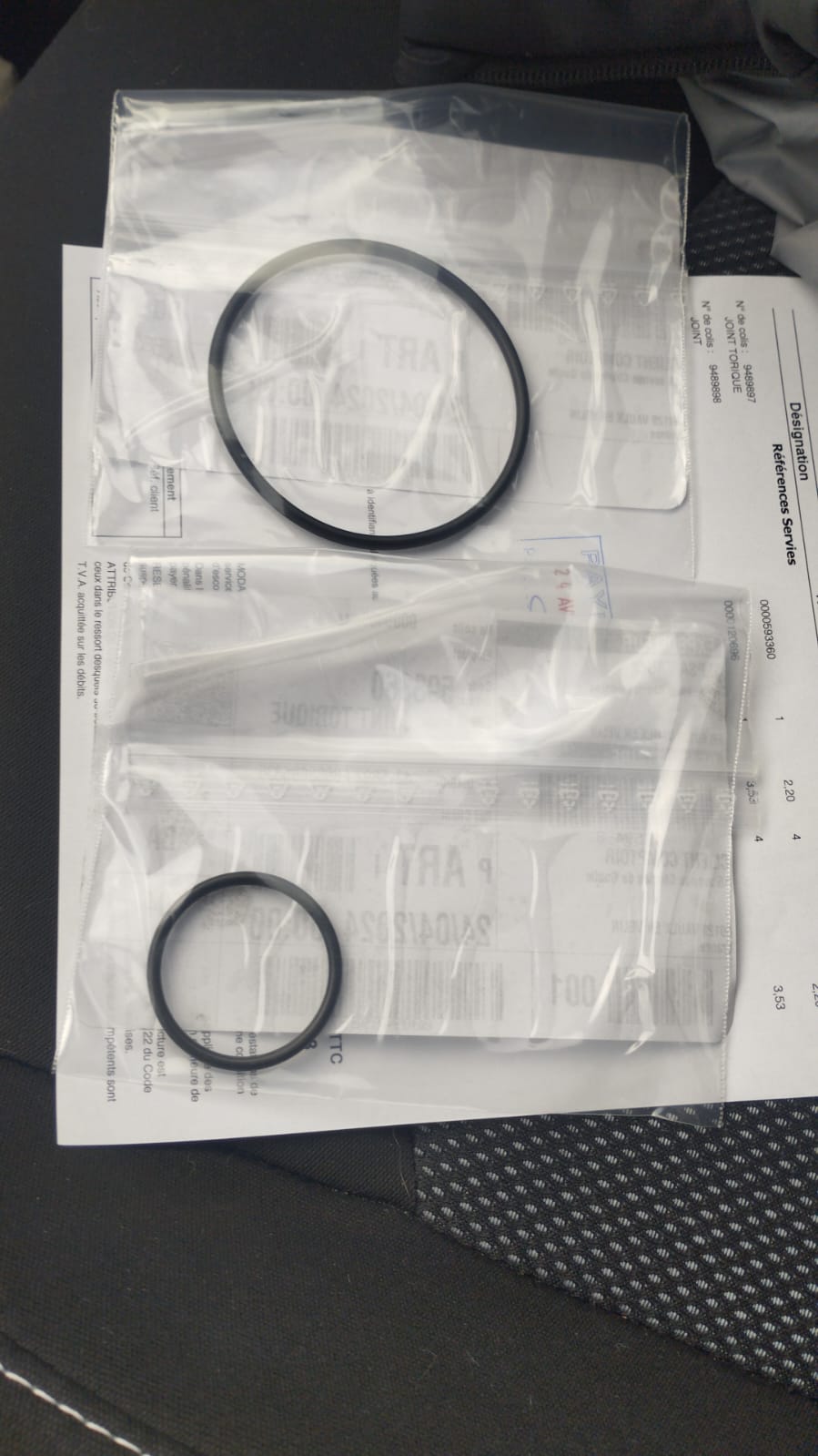 Et j'en ai profité pour prendre également le joint qui se trouve entre le boîtier pompe à eau et le bloc moteur 593360