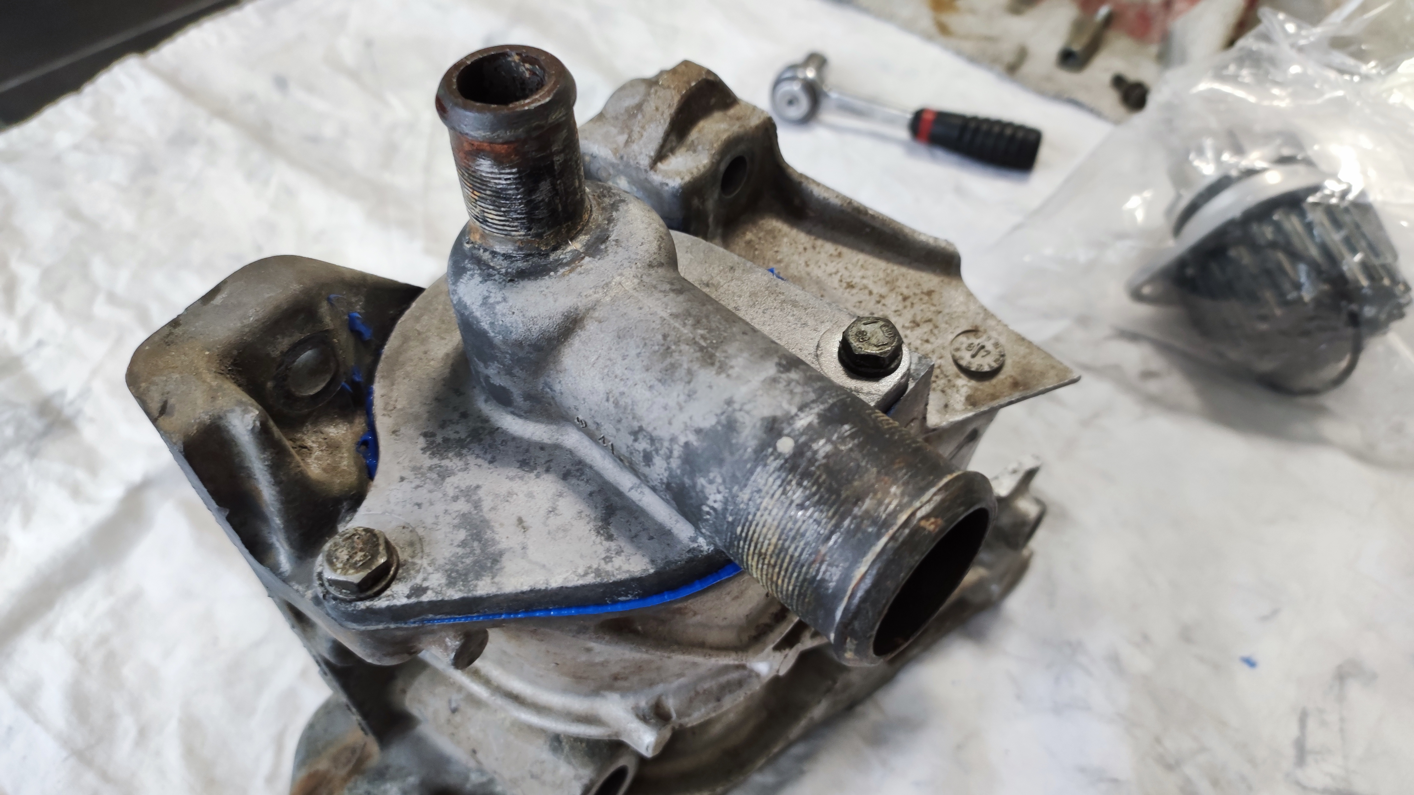 Je suis en train de reprendre une fuite de liquide de refroidissement au niveau du boîtier de pompe à eau.