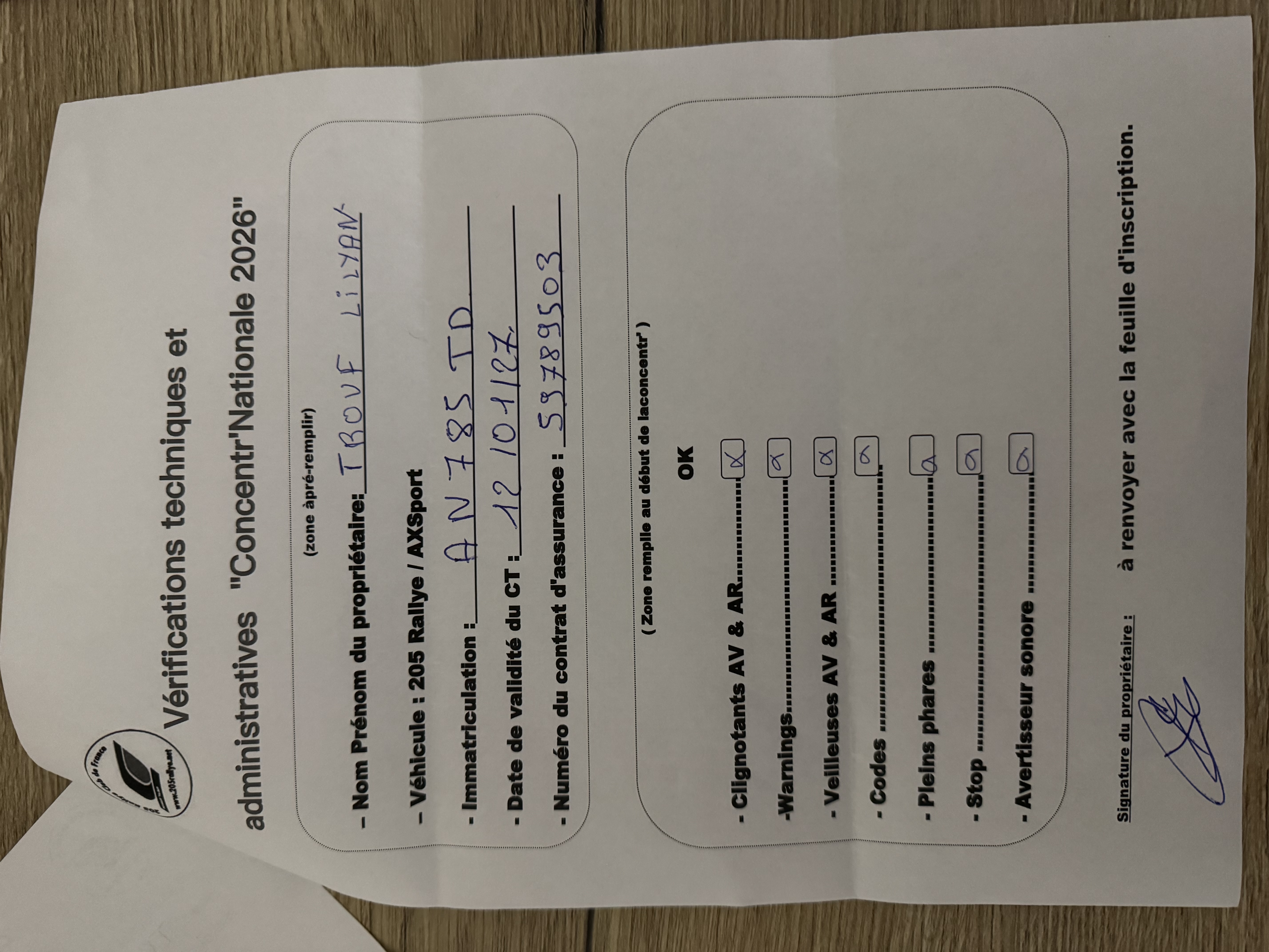 Par contre le mini contrôle tech à pré remplir….. J’ai pas !!!